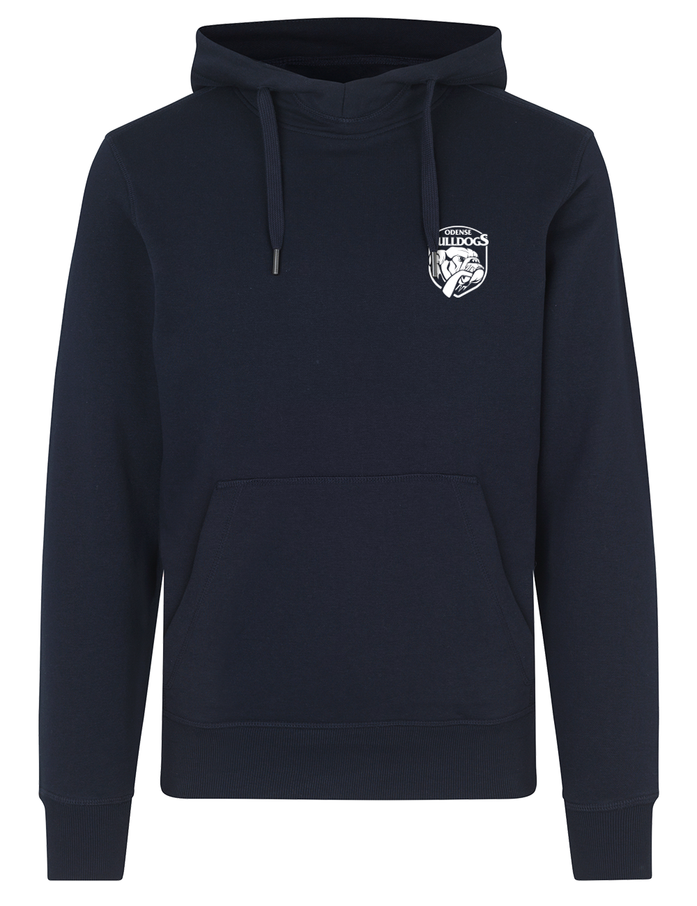 En klassisk hættesweatshirt med kængurulomme og Bulldogs logoet i hvid på brystet. Hoodien er lavet med snøre i hætte, samt rib ved ærme og bund. Denne hoodie er i god, kraftig kvalitet, og har en børstet inderside, som gør trøjen ekstra blød og behagelig.