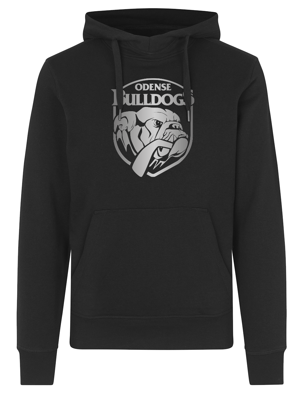 En klassisk hættesweatshirt med kængurulomme og det originale Odense Bulldogs logo i sølv på fronten. Hoodien er lavet med snøre i hætte, samt rib ved ærme og bund. Denne hoodie er i god, kraftig kvalitet, og har en børstet inderside, som gør trøjen ekstra blød og behagelig.