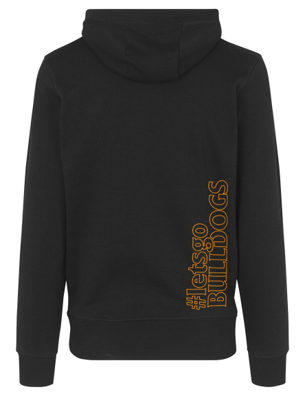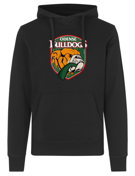 En klassisk hættesweatshirt med kængurulomme og det originale Odense Bulldogs logo i sort på fronten. Hoodien er lavet med snøre i hætte, samt rib ved ærme og bund. Denne hoodie er i god, kraftig kvalitet, og har en børstet inderside, som gør trøjen ekstra blød og behagelig.