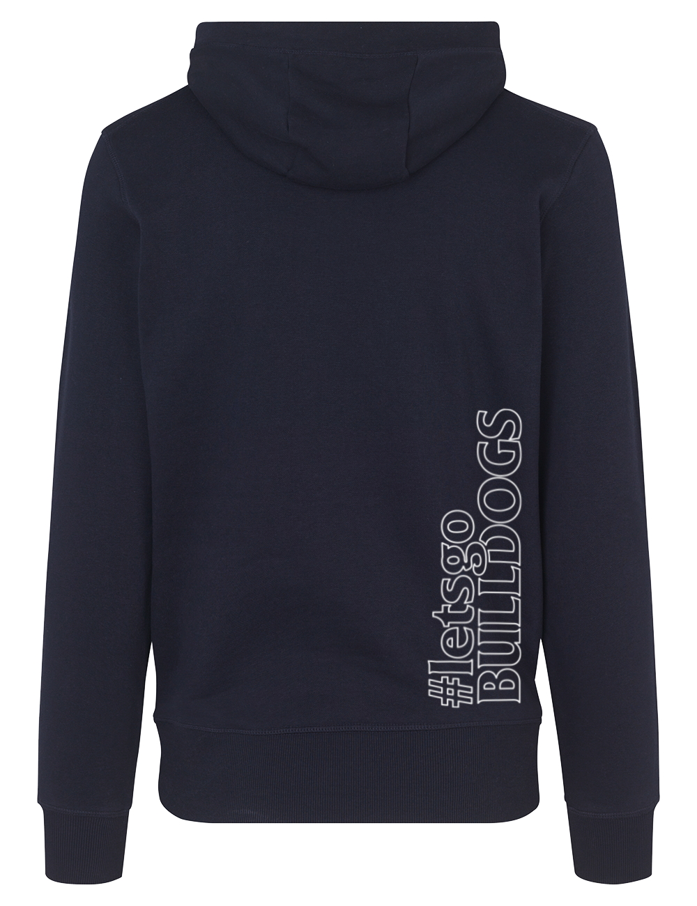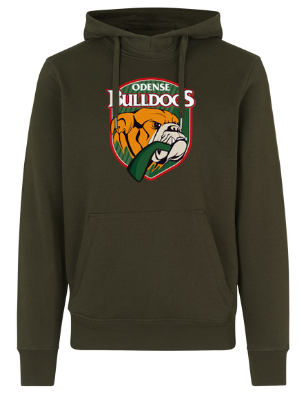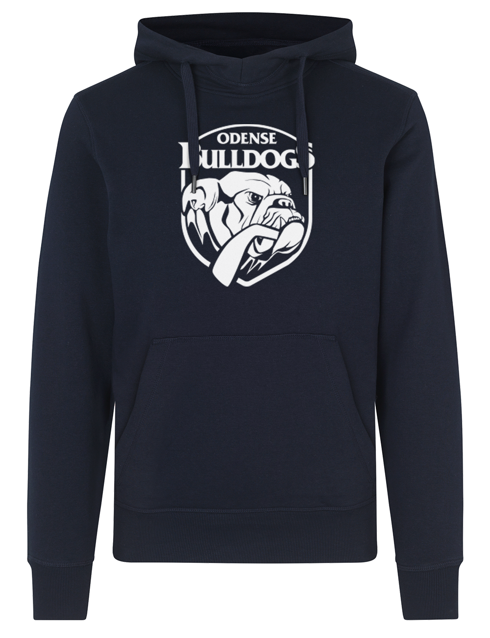 En klassisk hættesweatshirt med kængurulomme og det originale Odense Bulldogs logo i hvid på fronten. Hoodien er lavet med snøre i hætte, samt rib ved ærme og bund. Denne hoodie er i god, kraftig kvalitet, og har en børstet inderside, som gør trøjen ekstra blød og behagelig.