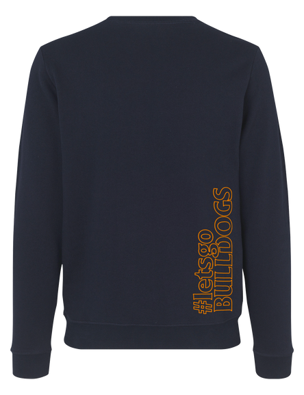 Denne sweatshirt er lavet med det originale Bulldogss logo på fronten, og #letsgoBULLDOGS på ryggen. Trøjen er lavet med rib ved hals, ærmer og bund. Denne hoodie er i god, kraftig kvalitet, og har en børstet inderside, som gør trøjen ekstra blød og behagelig.