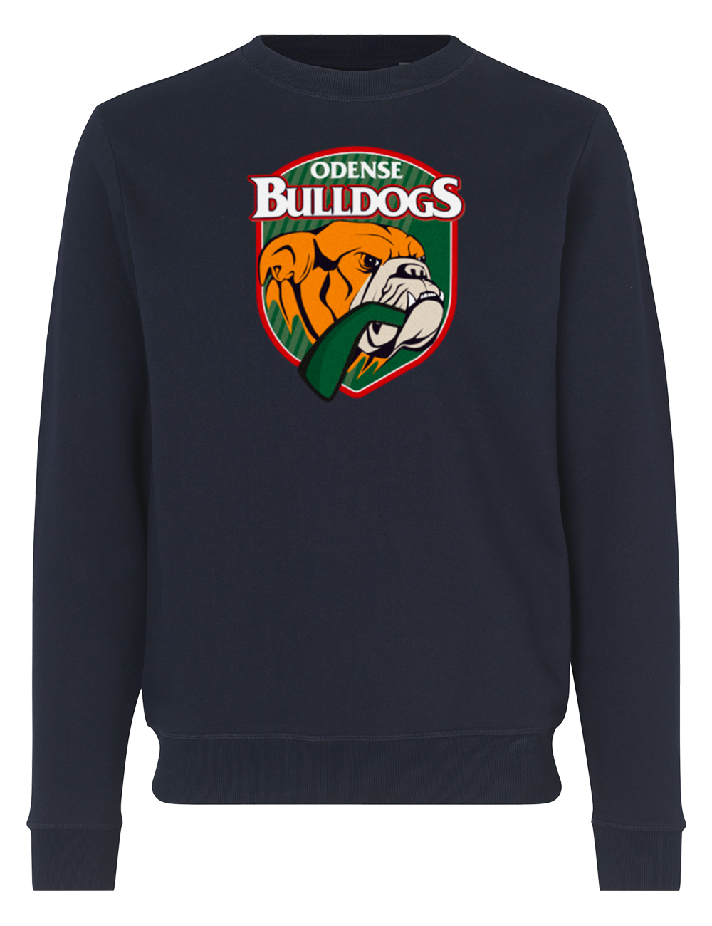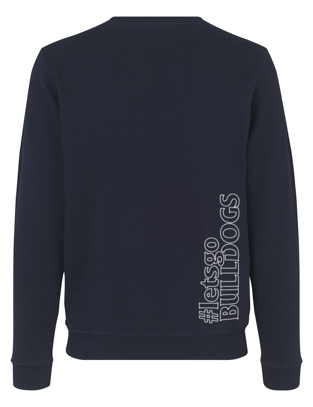 Denne sweatshirt er lavet med det originale Bulldogss logo på fronten, og #letsgoBULLDOGS på ryggen. Trøjen er lavet med rib ved hals, ærmer og bund. Denne hoodie er i god, kraftig kvalitet, og har en børstet inderside, som gør trøjen ekstra blød og behagelig.
