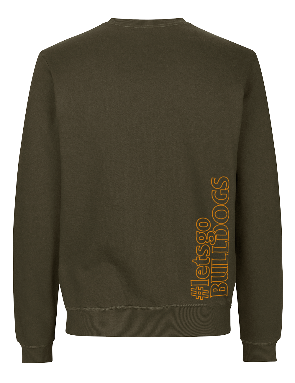 Denne sweatshirt er lavet med det originale Bulldogss logo på fronten, og #letsgoBULLDOGS på ryggen. Trøjen er lavet med rib ved hals, ærmer og bund. Denne hoodie er i god, kraftig kvalitet, og har en børstet inderside, som gør trøjen ekstra blød og behagelig.