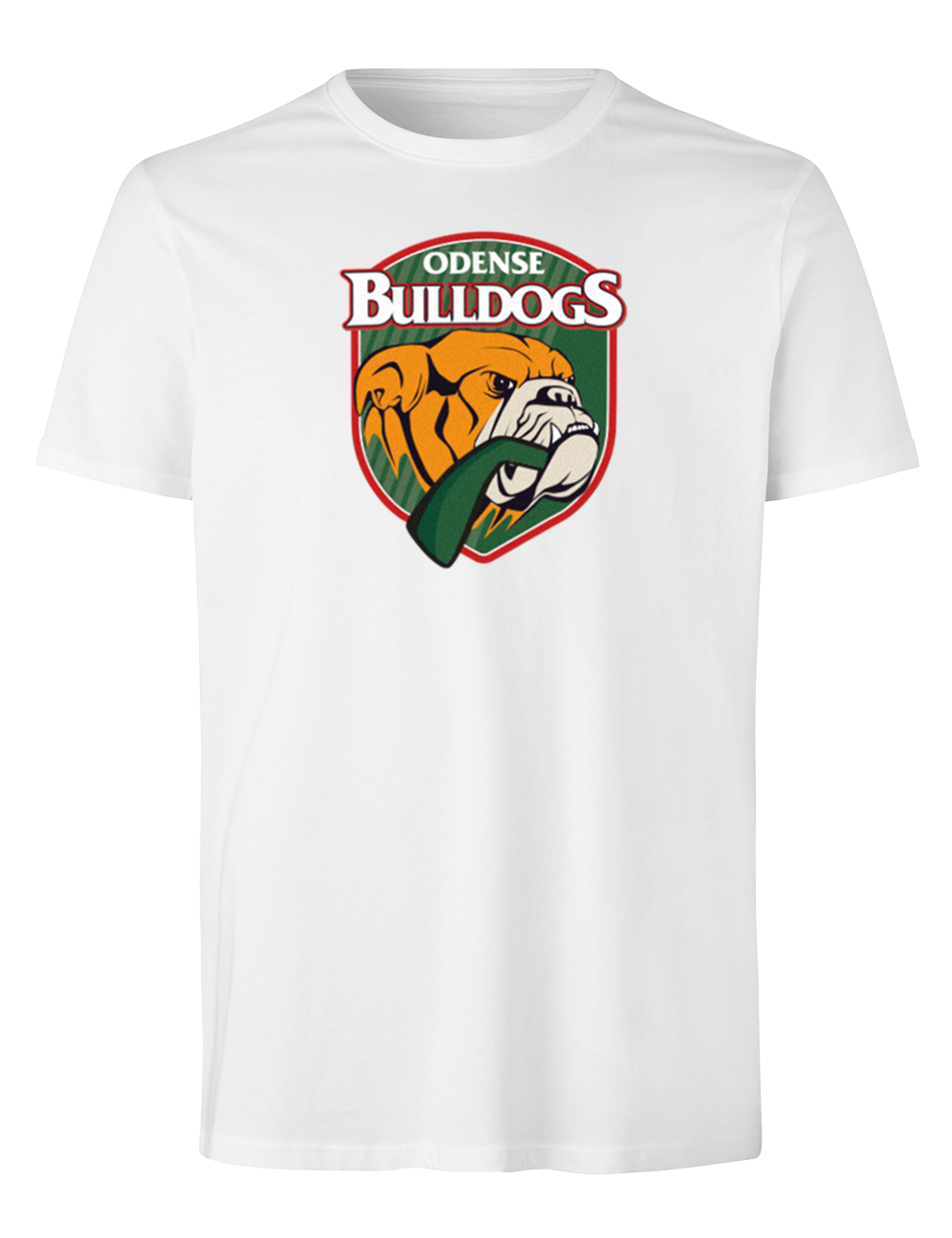En klassisk t-shirt i økologisk bomuld med det originale Bulldogs logo på fronten. T-shirten er lavet med ribkant ved kraven for at sikre en optimal pasform. Den er ideel til hverdagsbrug, men kan bruges til alle lejligheder, hvor logoet skal vises frem.