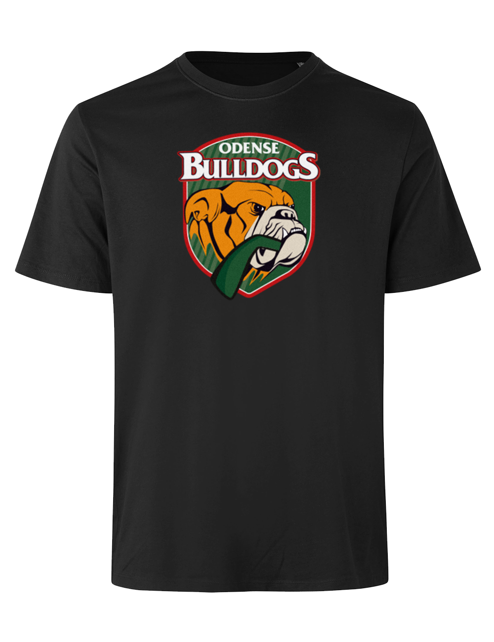 En klassisk t-shirt i økologisk bomuld med det originale Odense Bulldogs logo på fronten. T-shirten er lavet med ribkant ved kraven for at sikre en optimal pasform. Den er ideel til hverdagsbrug, men kan bruges til alle lejligheder, hvor logoet skal vises frem.