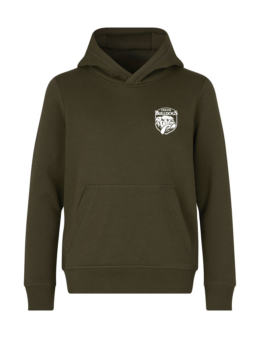 En klassisk hættesweatshirt med kængurulomme og Odense Bulldogs logoet i hvid på brystet. Hoodien er lavet med rib ved ærme og bund. Det er en hoodie i kraftig kvalitet, der har en børstet inderside, som gør trøjen ekstra blød og behagelig.