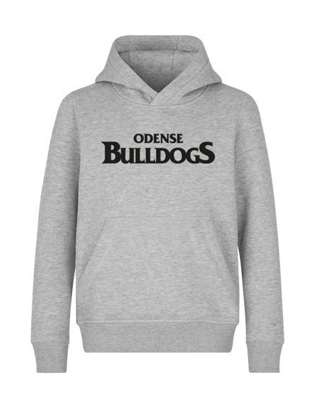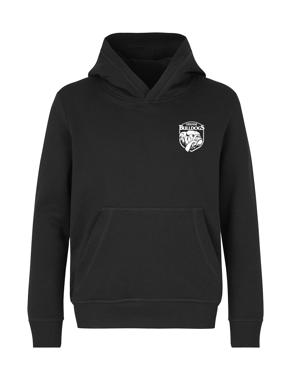 En klassisk hættesweatshirt med kængurulomme og Odense Bulldogs logoet i hvid på brystet. Hoodien er lavet med rib ved ærme og bund. Det er en hoodie i kraftig kvalitet, der har en børstet inderside, som gør trøjen ekstra blød og behagelig.