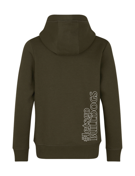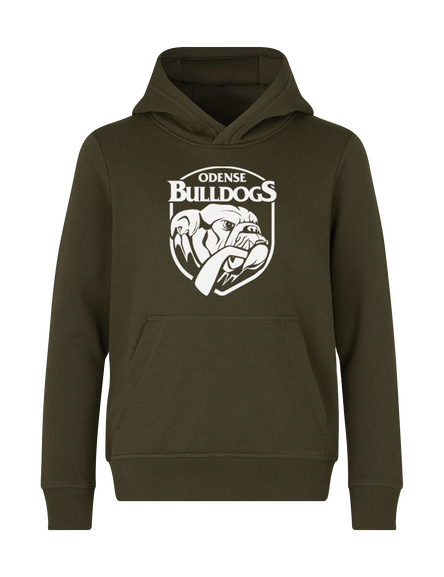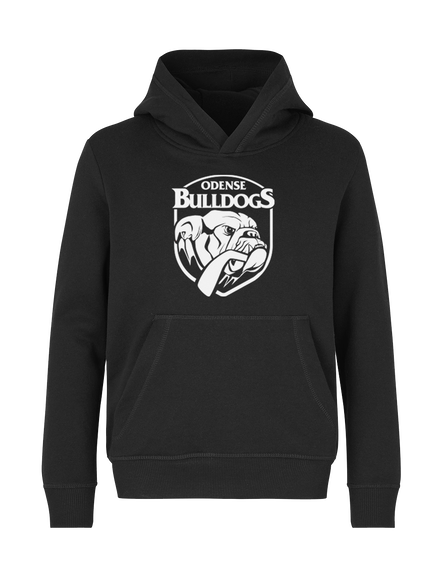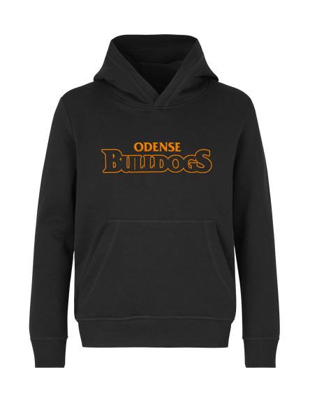 En klassisk hættesweatshirt med kængurulomme og Odense Bulldogs på brystet. Hoodien er lavet med rib ved ærme og bund. Det er en hoodie i kraftig kvalitet, der har en børstet inderside, som gør trøjen ekstra blød og behagelig.
