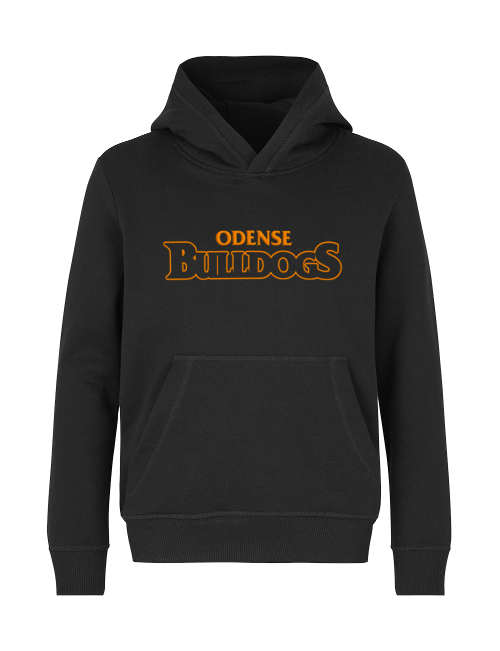 En klassisk hættesweatshirt med kængurulomme og Odense Bulldogs på brystet. Hoodien er lavet med rib ved ærme og bund. Det er en hoodie i kraftig kvalitet, der har en børstet inderside, som gør trøjen ekstra blød og behagelig.
