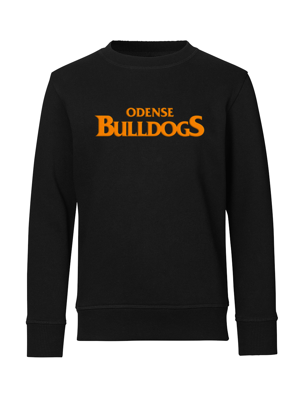En klassisk sweatshirt i sort med Odense Bulldogs logoet i orange på brystet med puff effekt. Sweatshirten er lavet med rib ved hals, ærmer og bund. Der er tale om en sweatshirt i kraftig kvalitet, men med en børstet inderside, som gør trøjen ekstra blød og behagelig.