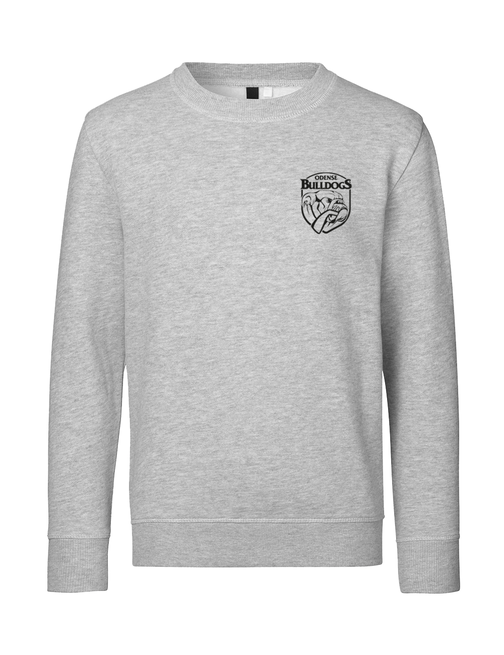 En klassisk sweatshirt i grå med Odense Bulldogs logoet i sort på brystet. Sweatshirten er lavet med rib ved hals, ærmer og bund. Det er en sweatshirt i kraftig kvalitet, der har en børstet inderside, som gør trøjen ekstra blød og behagelig.
