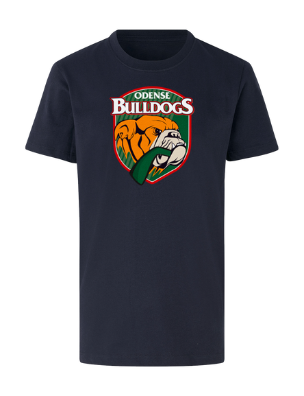 En klassisk t-shirt i økologisk bomuld med det originale Odense Bulldogs logo på fronten. T-shirten er lavet med ribkant ved kraven for at sikre en optimal pasform. Den er ideel til hverdagsbrug, men kan bruges til alle lejligheder, hvor logoet skal vises frem.