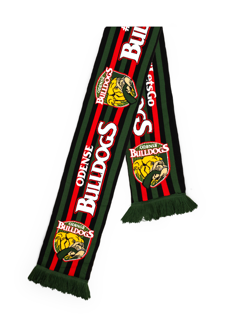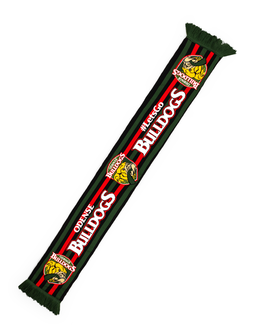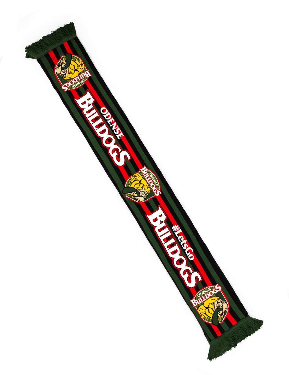 Dette halstørklæde er lavet i de klassiske Bulldogs farver med striber og logo. Brug den i de kolde måneder, eller når du skal ud og heppe på vores alle sammens hold.