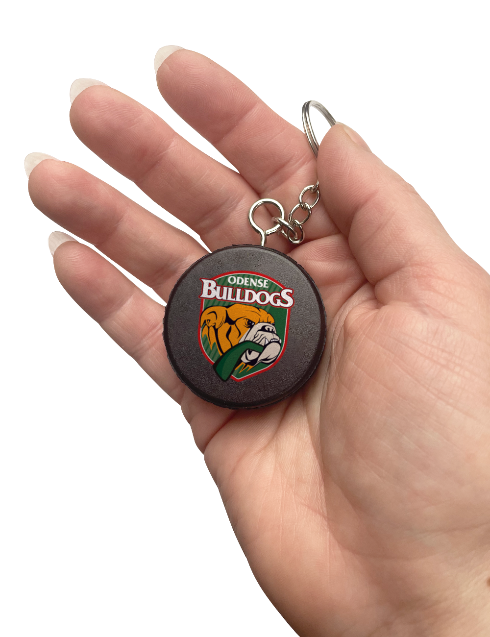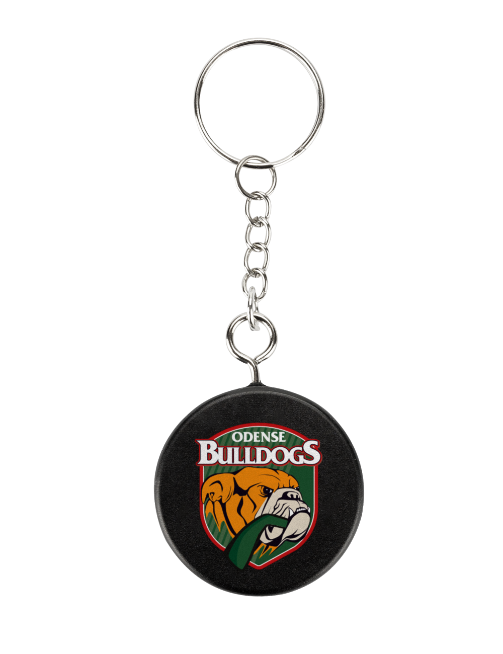 Få samling på dine nøgler med denne nøglering fra Odense Bulldogs. Den er lavet med en lille puck med logo på, som øger genkendeligheden for netop dit nøglebundt.