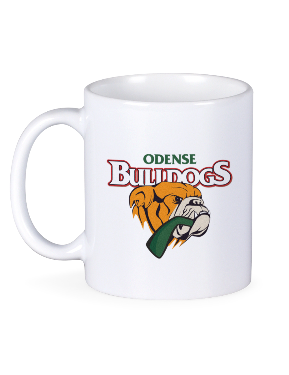Et klassisk hvidt krus med Odense Bulldogs-logo, der viser den ikoniske bulldog. Et enkelt og stilrent design, der gør kruset perfekt til både morgenkaffen, kakao før kamp eller en varm drik under en spændende hockeyaften.