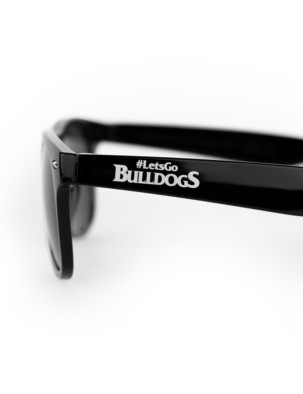 Solbriller er ikke til at undvære, når solen skinner. Bliv klar til solens stråler med disse Bulldogs solbriller i sort. På stellet ses #LetsGoBulldogs og Odense Bulldogs.